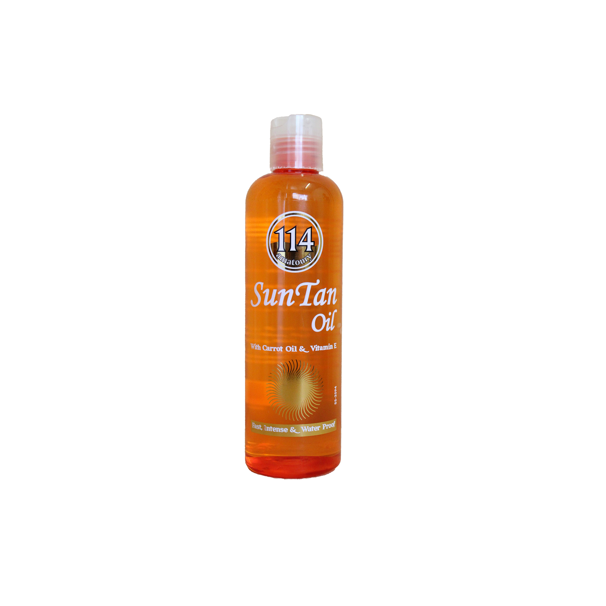 114 SUNTAN OIL is a tanning oil which provides the skin with a beautiful golden tan. Enriched with carrot oil and vitamin E, this formula supports the skin moisture level for a silky and smooth skin while enhancing tanning results.